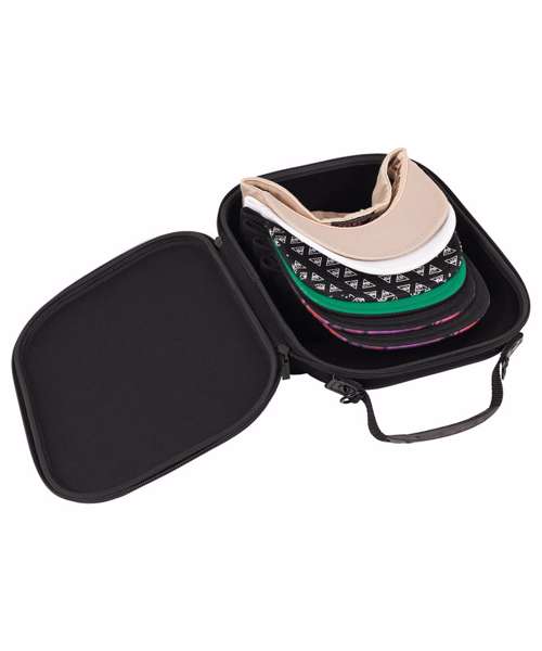 The Flexfit Cap Carrier gives cap wearers and collectors the possibility to transport, store and protect up to 6 caps. Made of crush proof EVA material, it is washable but not suitable for tumble drier. 6 eyelets for ventilation ensure a good air circulation. The Flexfit Cap Carrier can be opened easily due to the double zip closure. Further it features two metal rings for a convenient attachment to a suitcase or backpack. The rubber-coated handles provide a comfortable grip for the transport. The fine logo branding gives a cool look.