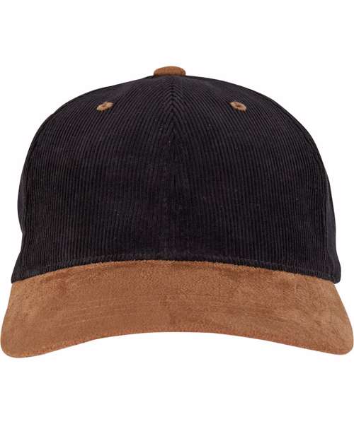 6-panel corduroy crown with reinforced front. Pre-curved velour brim. Adjustable metal buckle closure.
